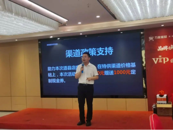 旺德府家居集團(tuán)大客戶(hù)中心總經(jīng)理湯科先生受邀出席,他以誠(chéng)摯而有力的話(huà)語(yǔ)向全場(chǎng)致謝。就萬(wàn)象板材系列產(chǎn)品展開(kāi)詳細(xì)講解,并表示未來(lái)萬(wàn)象板材將繼續(xù)深化產(chǎn)品研發(fā),優(yōu)化服務(wù)體系,與合作伙伴共同開(kāi)拓更廣闊的市場(chǎng)!