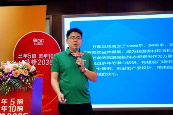 旺德府家居集團(tuán)大客戶業(yè)務(wù)中心總經(jīng)理湯科先生登臺(tái)詳解政策與產(chǎn)品賦能體系。解讀品牌及核心產(chǎn)品的競(jìng)爭(zhēng)優(yōu)勢(shì),同時(shí)強(qiáng)調(diào):萬(wàn)象天冠品牌“高端板材 + 高端輔材”的組合方案憑借卓越品質(zhì)與超強(qiáng)環(huán)保性能,將為衣柜定制業(yè)務(wù)提供堅(jiān)實(shí)可靠的品質(zhì)保障。