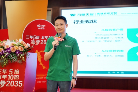 旺德府家居集團(tuán)新零售定制業(yè)務(wù)中心聯(lián)席總經(jīng)理李寄羅先生深度拆解行業(yè)困局破解路徑,重點(diǎn)講解萬(wàn)象天冠高端衣柜定制的核心競(jìng)爭(zhēng)優(yōu)勢(shì),同時(shí)系統(tǒng)闡釋了個(gè)人代理模式的運(yùn)營(yíng)邏輯與配套政策支持。