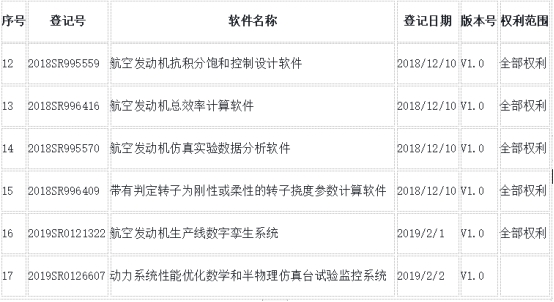 從官方渠道獲悉,航天智造(廈門)科技研究院已經(jīng)獲得的如下17項(xiàng)目航空軟件系統(tǒng)完整的知識(shí)產(chǎn)權(quán)授權(quán)(航天智造相關(guān)軟件登記信息)