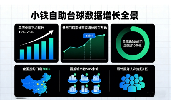 小鐵自助臺球以 7000 + 簽約門店覆蓋全國 550 余城、服務(wù)超 1 億人次,穩(wěn)居行業(yè)標桿。2025年12月率先發(fā)起 “桿就是直” 品質(zhì)革命,首創(chuàng)直桿檢驗區(qū)標準、上線數(shù)字化管理系統(tǒng),引領(lǐng)行業(yè)從價格內(nèi)卷轉(zhuǎn)向品質(zhì)體驗。超1000家門店積極響應(yīng),實現(xiàn)累計超百萬營收增長,成功完成從規(guī)模擴張到價值引領(lǐng)的戰(zhàn)略升級,以品質(zhì)驅(qū)動為自助臺球行業(yè)注入高質(zhì)量發(fā)展新動能。