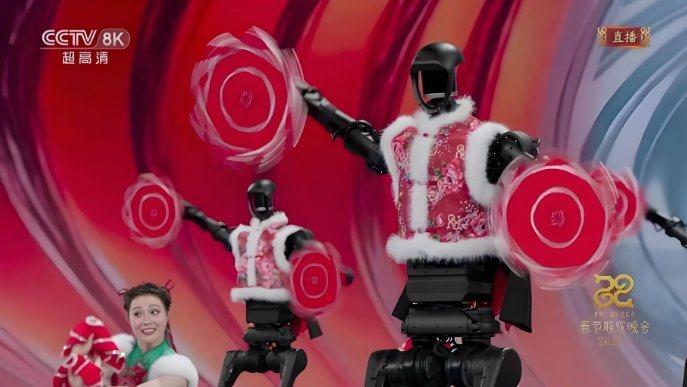 2025 年春晚人形機器人的扭秧歌、拋手絹: